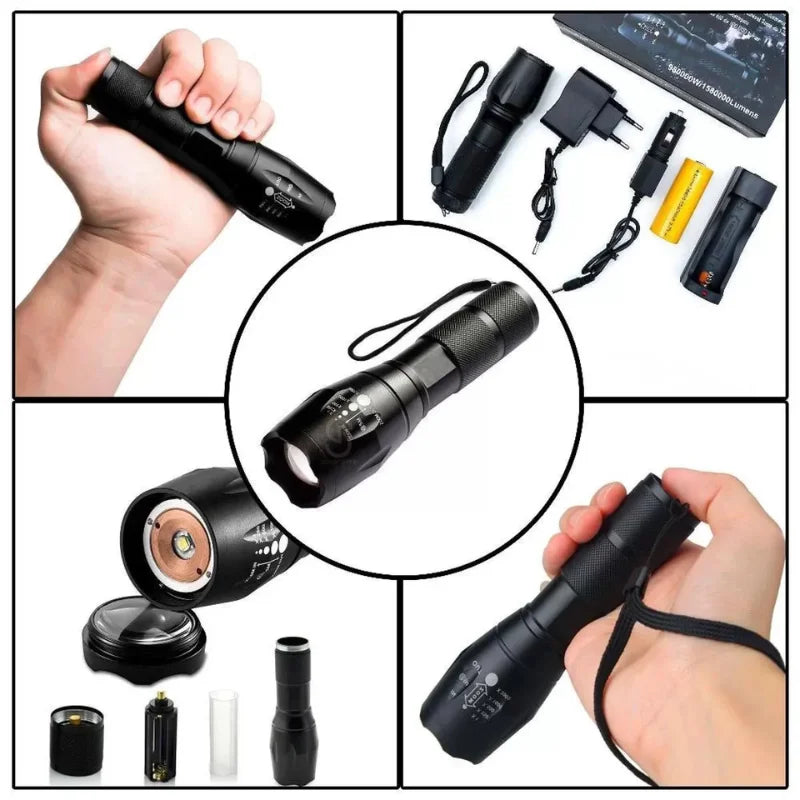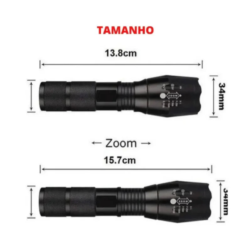 LANTERNA TÁTICA MILITAR X900 ZOOM RECARREGÁVEL