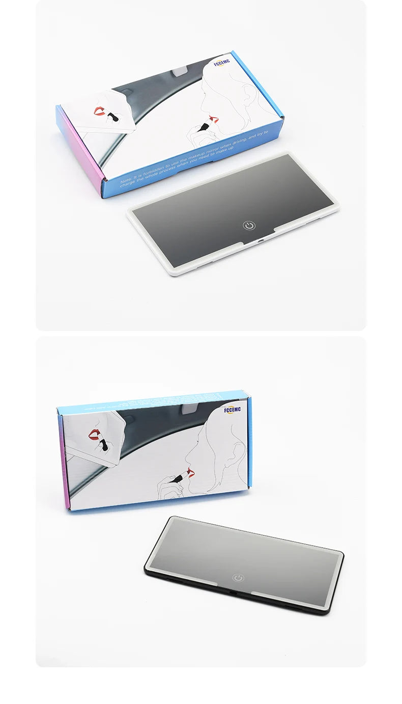 Tiras de luz retangulares que reduzem sombras e interferências durante a maquiagem.
